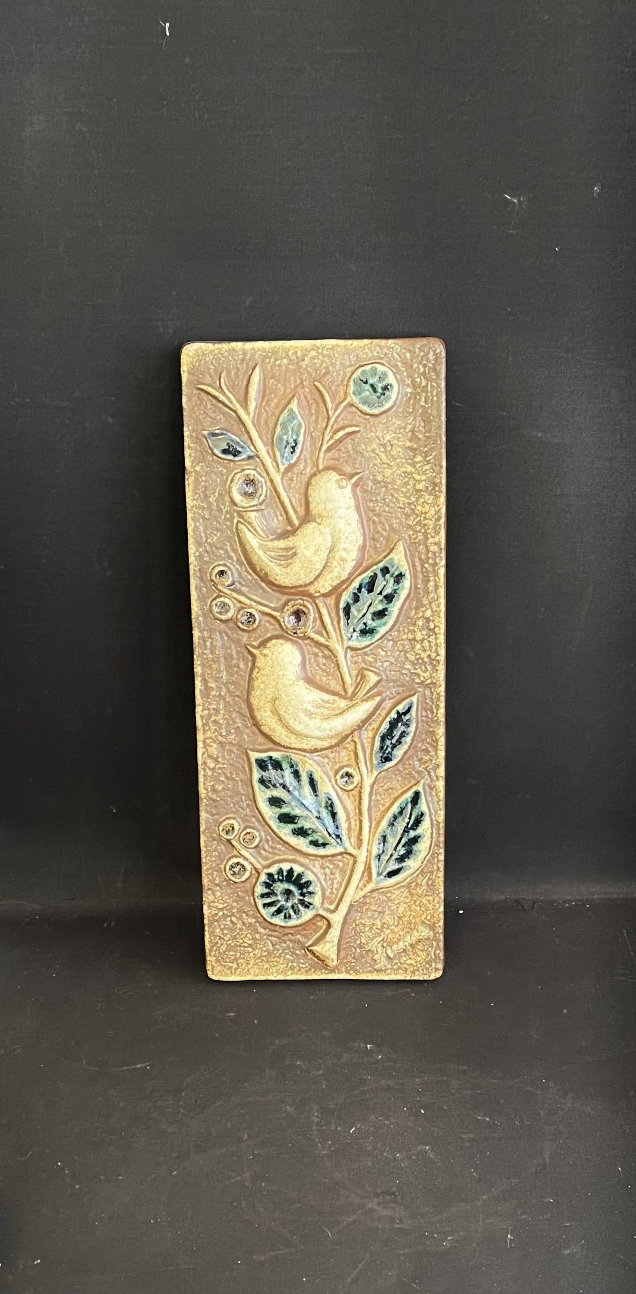 Søholm relief med fugle. Måler 43x17x2 cm.