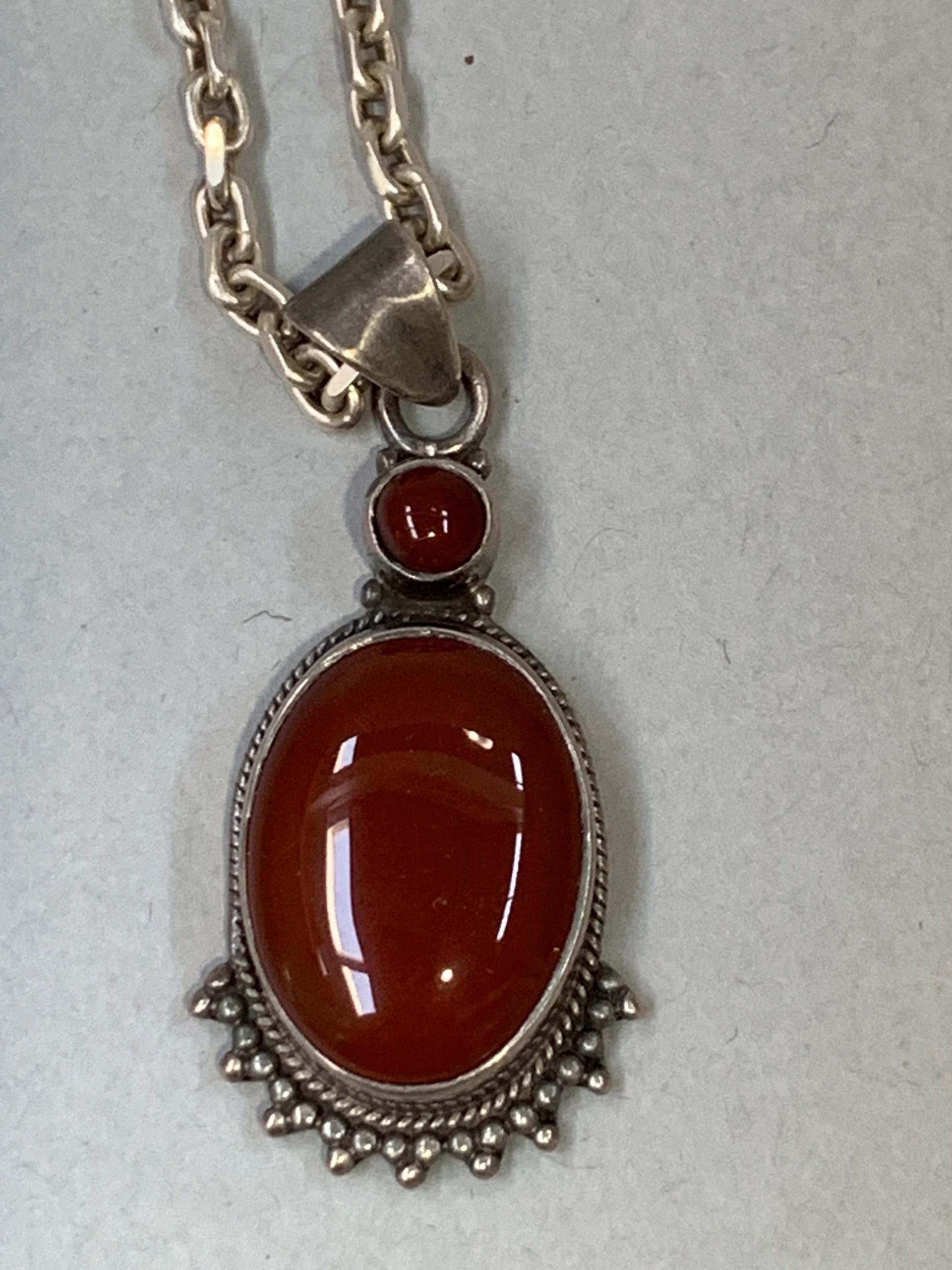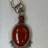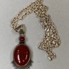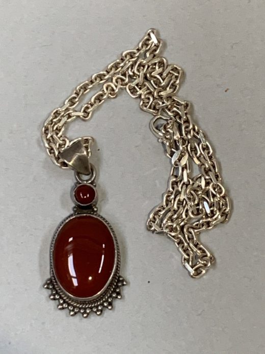 Sølvkæde med flot vedhæng med rød/brun sten.