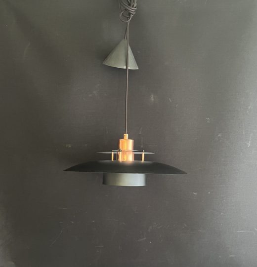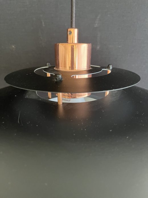 Sørup pendel i sort og kobber fra Ellight. Ø: 40 cm.