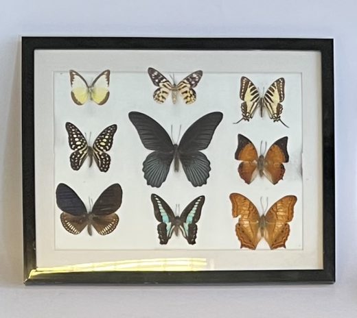 Ægte sommerfugle isat vat. Sat i ramme. Ramme har brugsspor.
