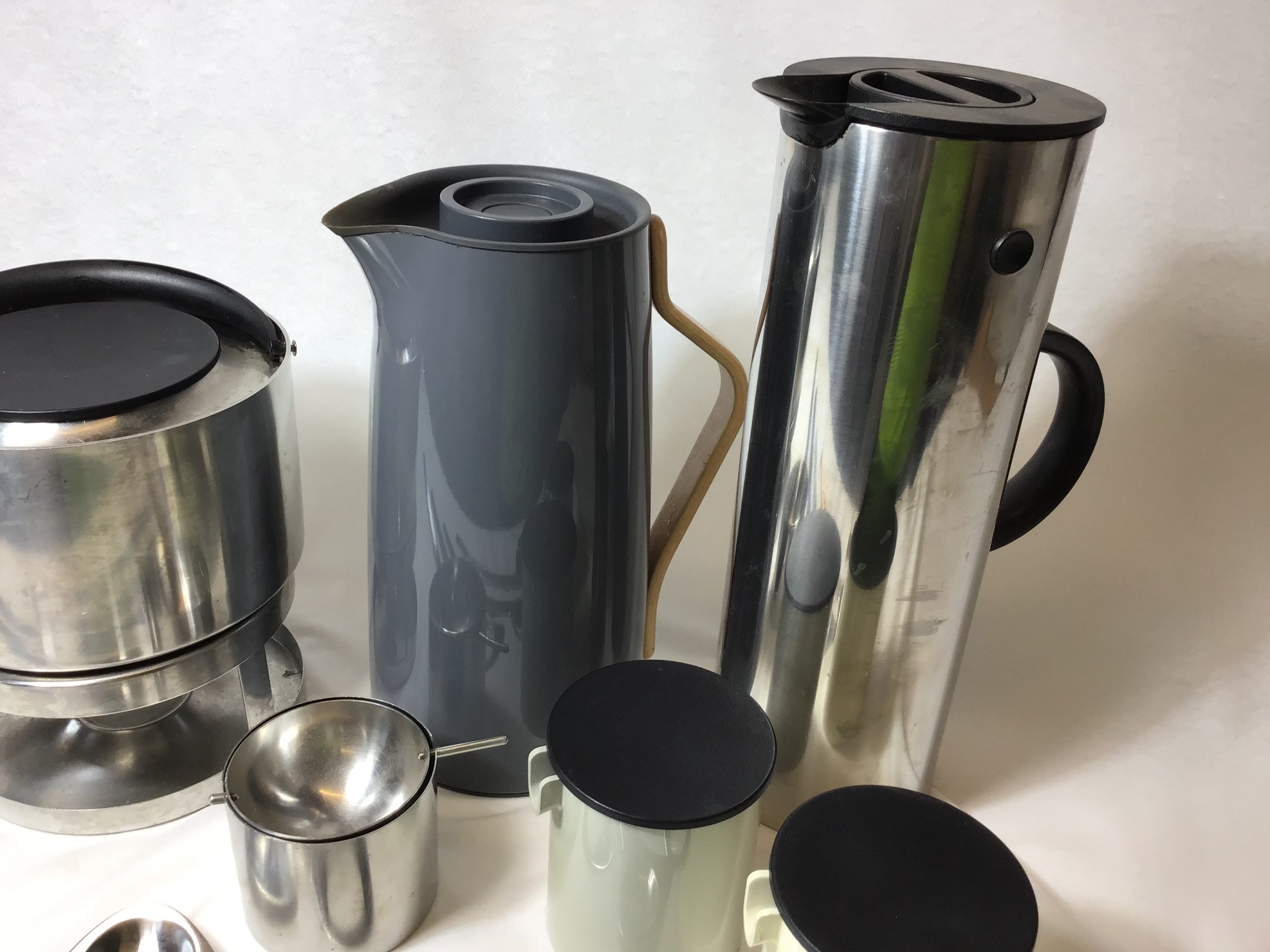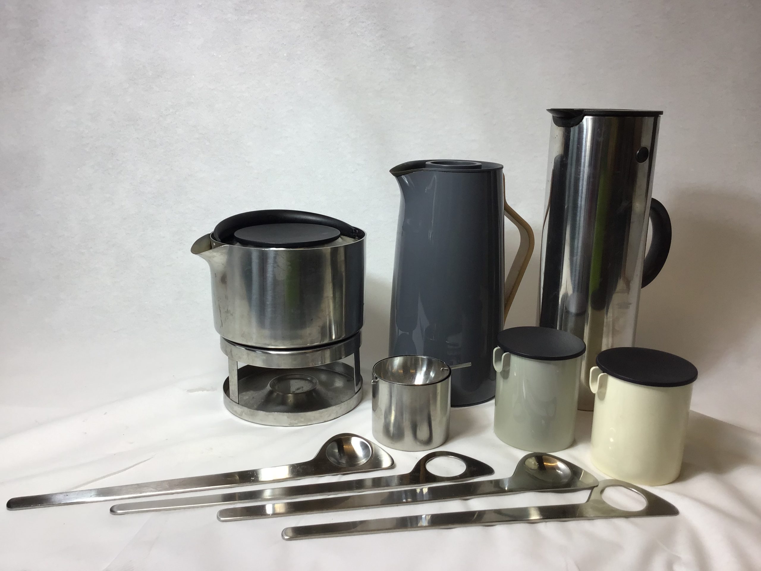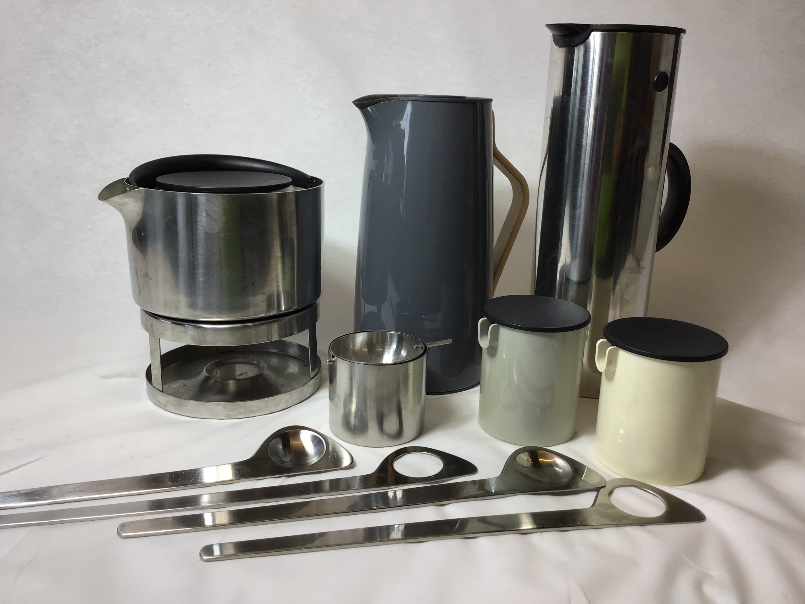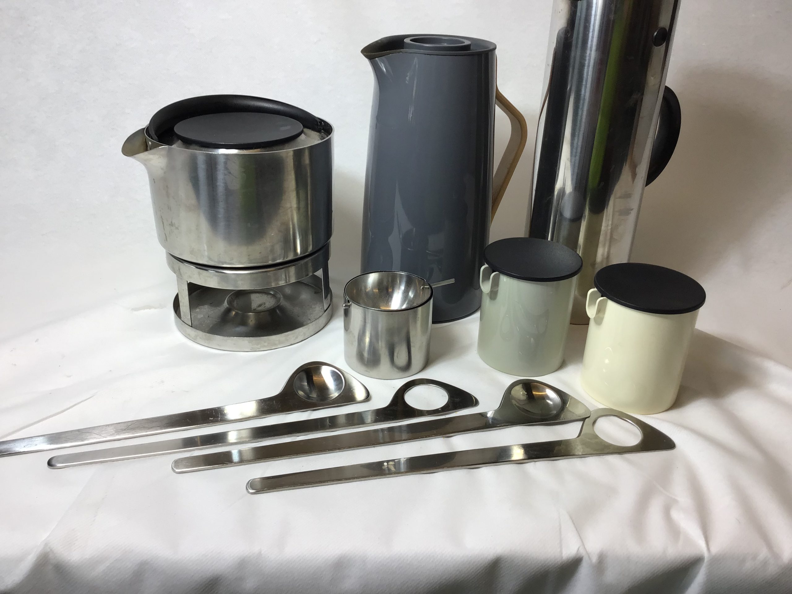 Stelton termokander, flødekander, tekande, askebæger og 2 sæt salatbestik.
