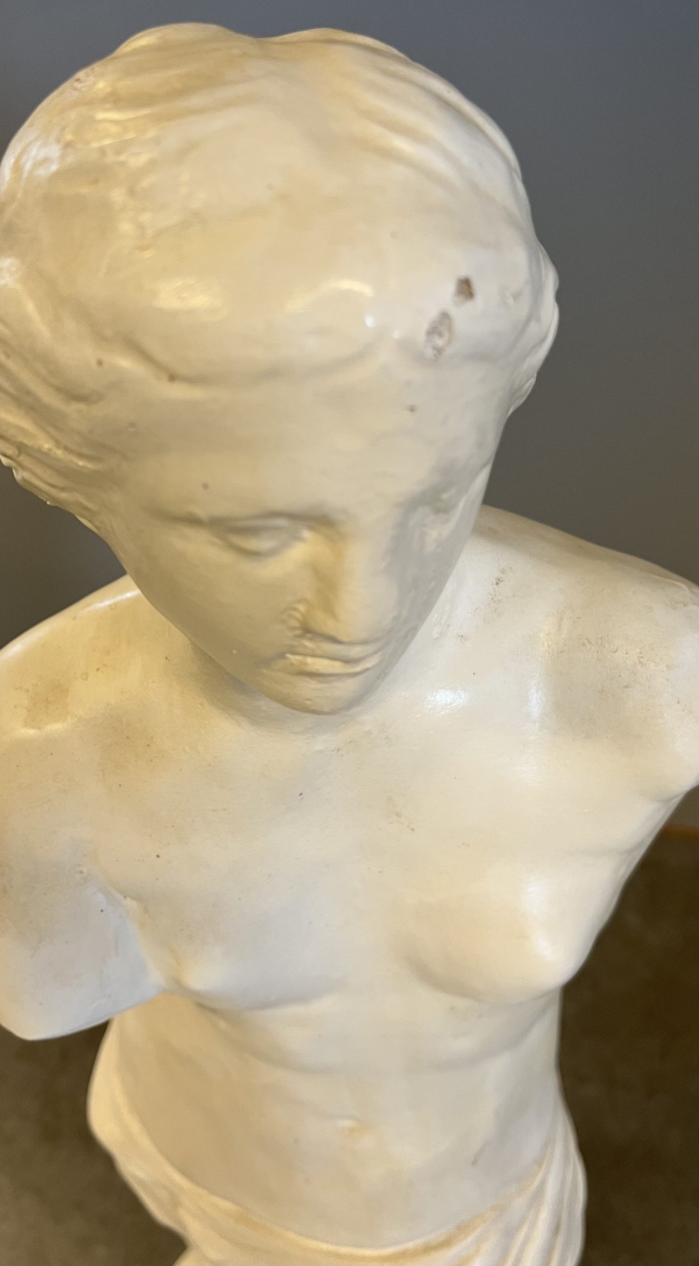 Fremstår med brugsspor, herunder lidt afslag i hovedet -se billeder. Figuren er tung.