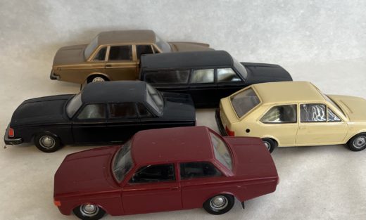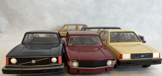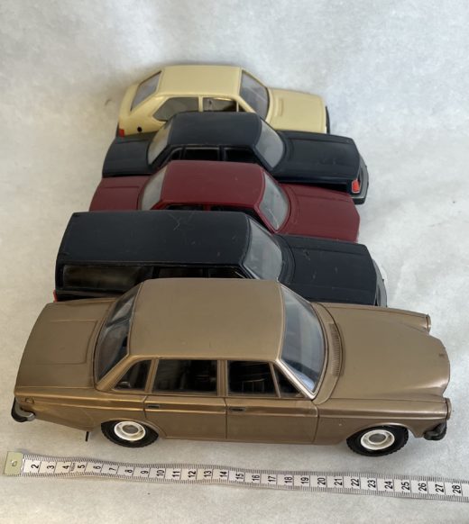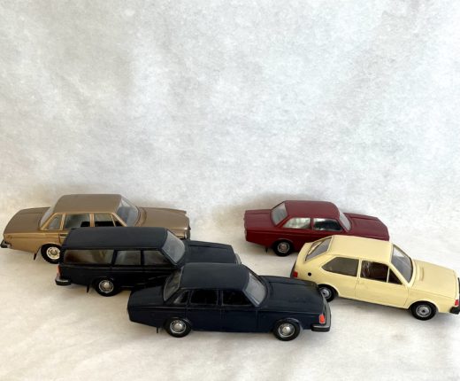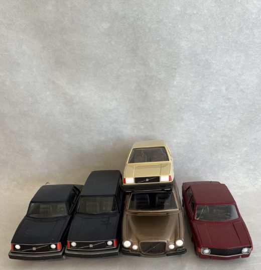 5 forskellige Volvo modeller i plastik. Made in Finland, står der i bunden- Angiveligt fra Stahlberg.