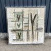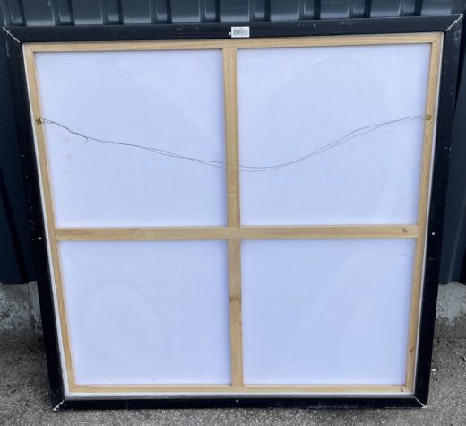 Måler 104×104 cm inklusive ramme. Ramme har brugsspor.
