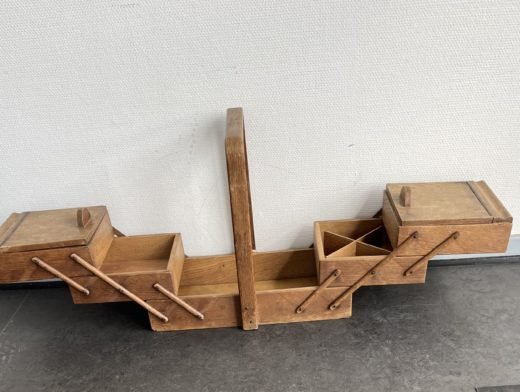 Stort syskrin i træ- udslået L: 50 cm – H: 40 cm- D: 40 cm.