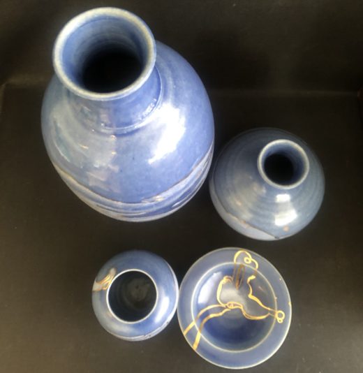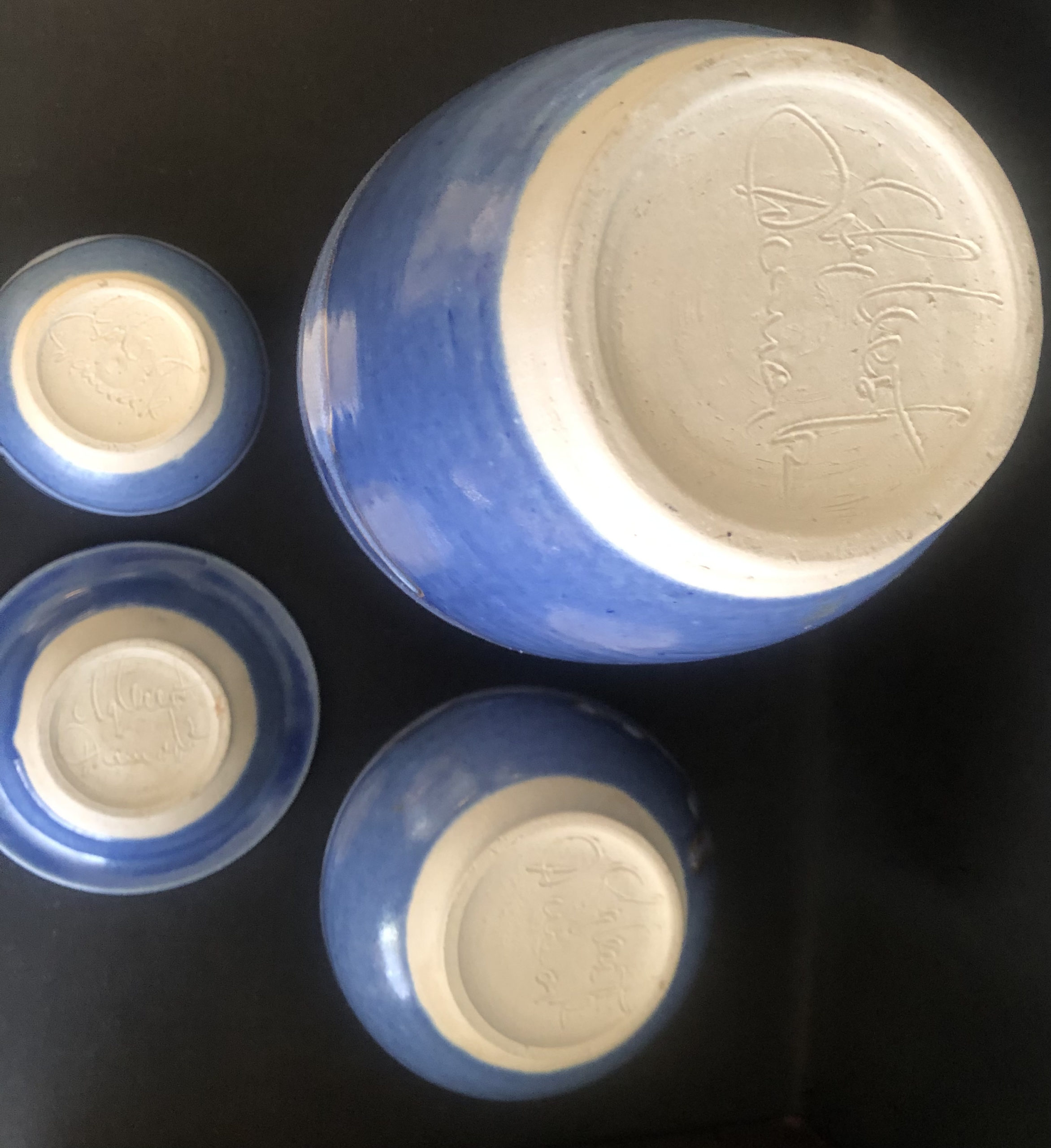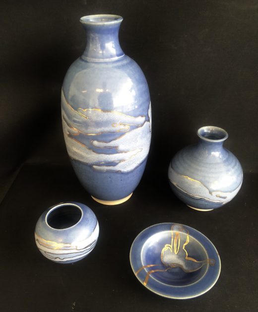 3 vaser og en skål. Vasers H: 31 cm – 15 cm & 17 cm.