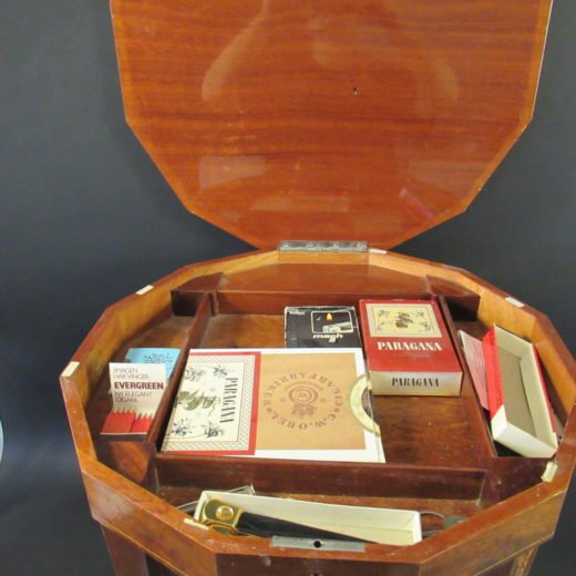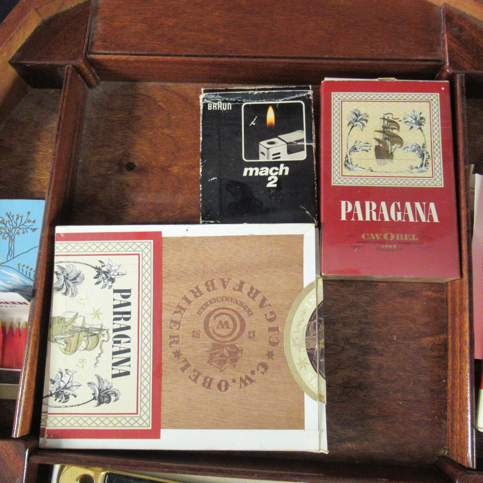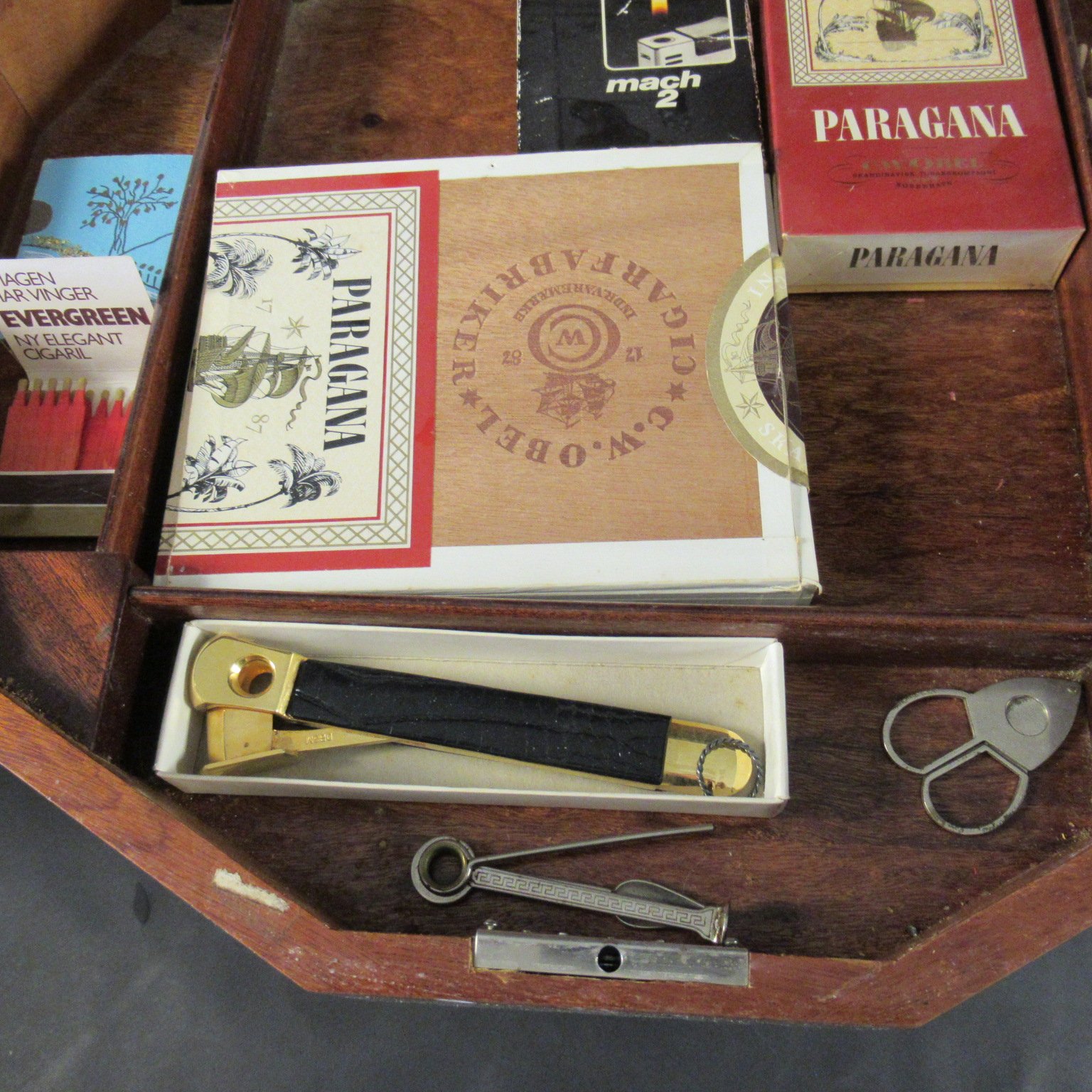 Bordet indeholder Cigarer, tændstikkere, cigarklippere etc.