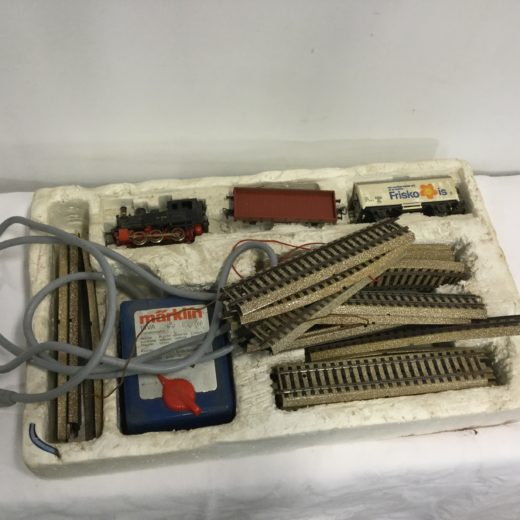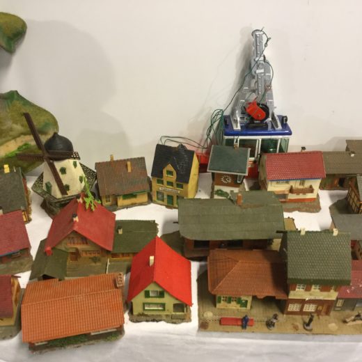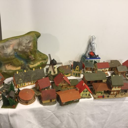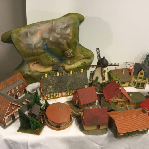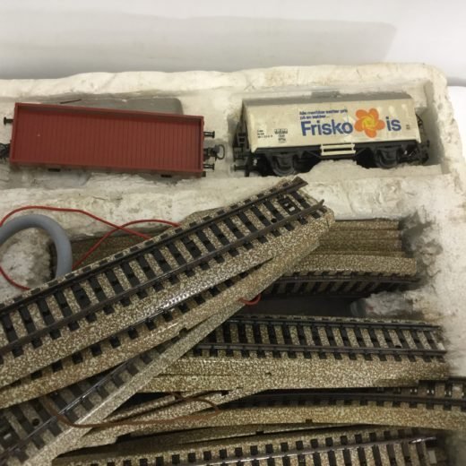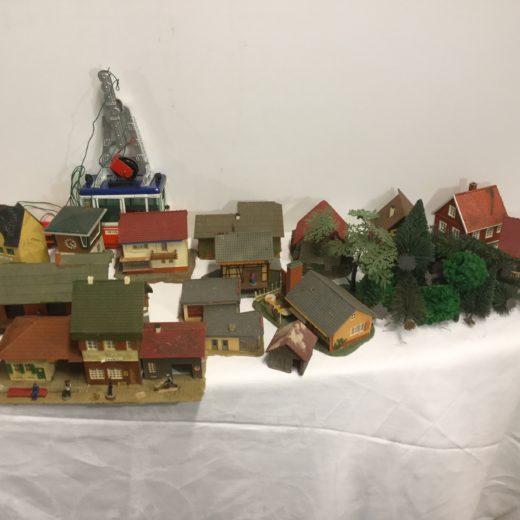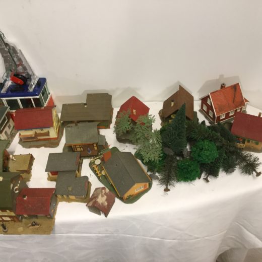 Togbane af 23 banestykker, 1 græstunnel, 25 huse, 20 træer 1 hejsebane og transformer