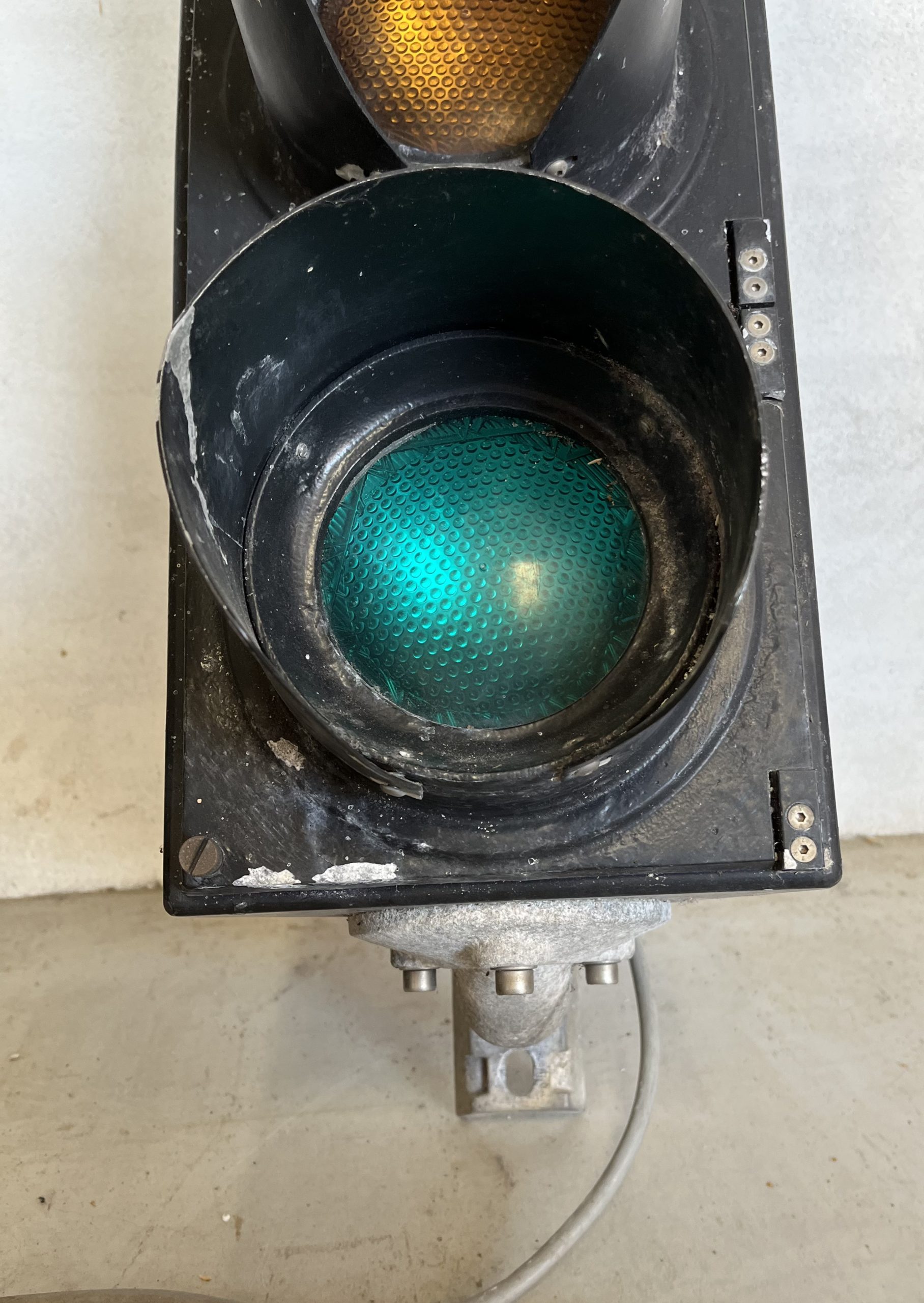 Trafiklys med masser af patina og mange brugsspor. Ikke testet så funktion er ukendt.