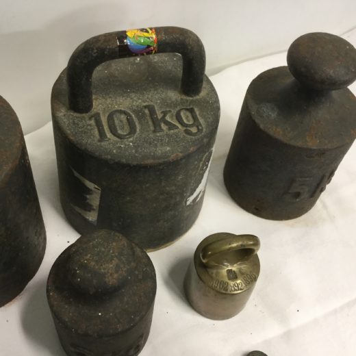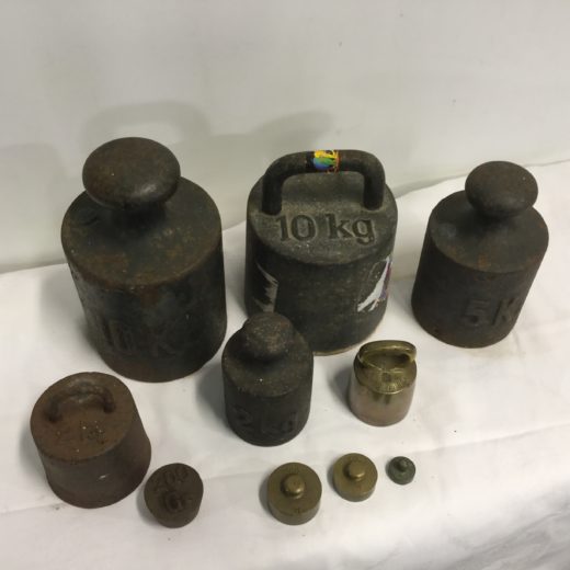 10 stk – 2 x 10 kg,  1 x 5 kg ,   2 x 2 kg ,  2  x 200 G ,  1 x 100 g og 1 x 20 gram + 1 ukendt